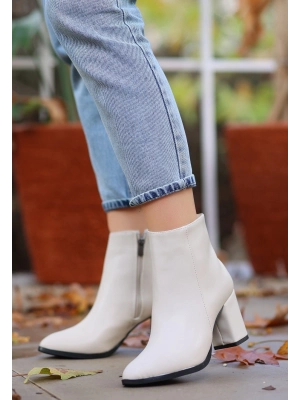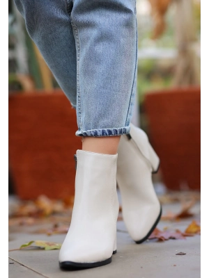 Loora Beyaz Rugan Desenli Topuklu Bot
