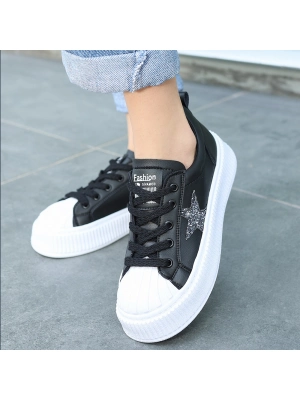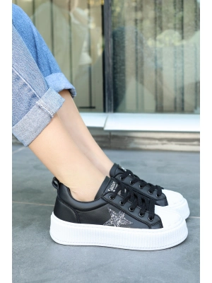 Zlay Siyah Cilt Bej Detaylı Bağcıklı Spor Ayakkabı