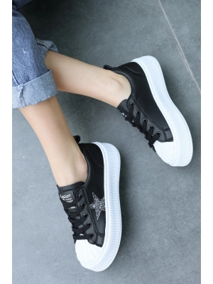 Piata Siyah Cilt Beyaz Tabanlı Bağcıklı Spor Ayakkabı - Bamido