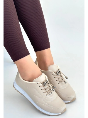 Finna Bej Cilt Bağcıklı Spor Ayakkabı