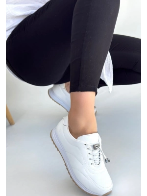Finna Beyaz Cilt Bağcıklı Spor Ayakkabı
