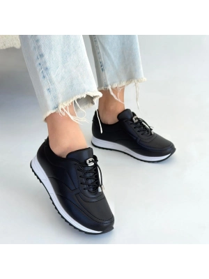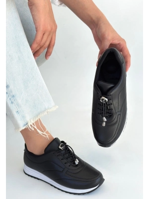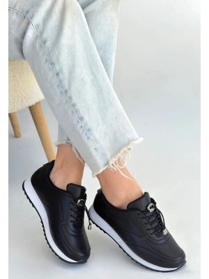 Finna Siyah Cilt Bağcıklı Spor Ayakkabı - Bamido