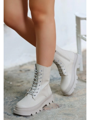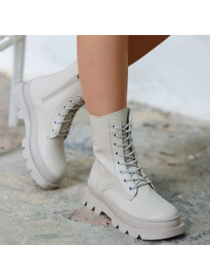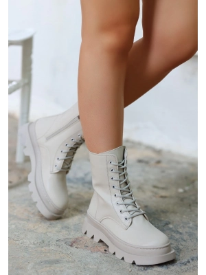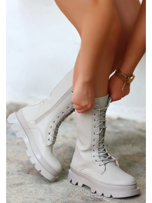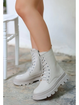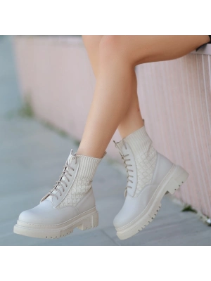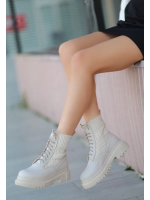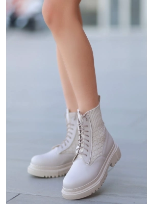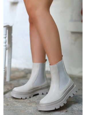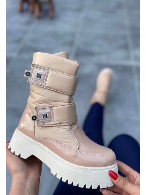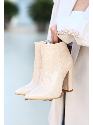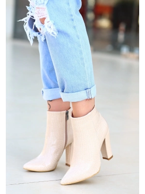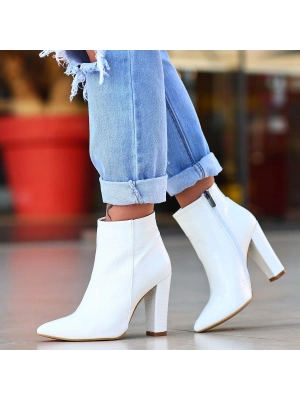 Loora Beyaz Rugan Desenli Topuklu Bot