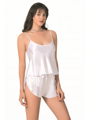 Beruflic Beyaz Saten Babydoll Şort Takımı