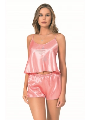 Beruflic Mercan Saten Babydoll Şort Takımı