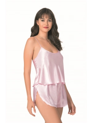 Beruflic Pembe Saten Babydoll Şort Takımı