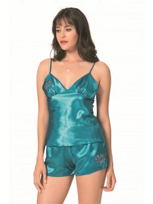 Beruflic Petrol Saten Babydoll Şort Takımı