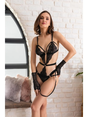 Fantezi Dantel Badi Eldiven Takım Siyah (mgp6658)