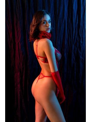 Fantezi Transparan Jartiyer Takım Kırmızı (mgp6632)