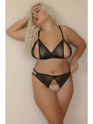 Özel Bölgeleri Açık Siyah Transparan Fantazi Sütyen Takımı Tm1307