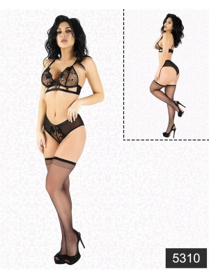 Beruflic Saten Dantelli Fantazi Çorap Sütyen Tanga Set