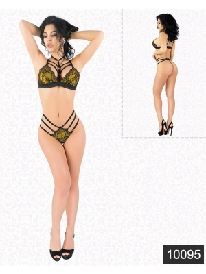 Beruflic Fantazi Sarı Lamine Dantel Jartiyer Büstiyer Takım