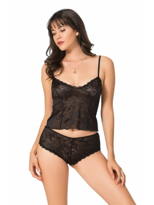 Beruflic Siyah Jakarlı Babydoll Şort Takımı