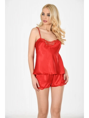 Kırmızı Saten Babydoll Şortlu Takım - 282