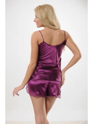 Mor Saten Dantelli Babydoll Şortlu Takım - 287