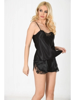 Siyah Dantelli Babydoll Şortlu Takım - 1453