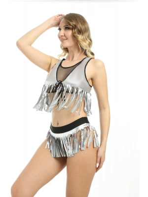 Gri Deri ( Lame ) Püsküllü Gecelik - 428