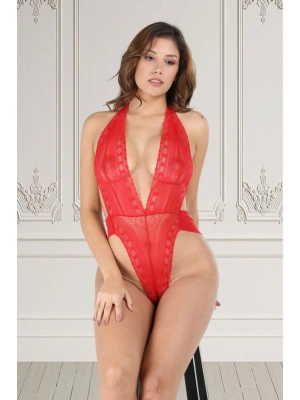 Kırmızı Dantelli Fantezi Bodysuit - 845