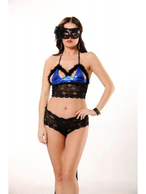 Siyah Saks Mavi Fantezi Bodysuit - 838