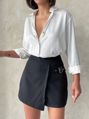 Yüksek Bel Parçalı Double Kumaş Şort S25312