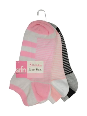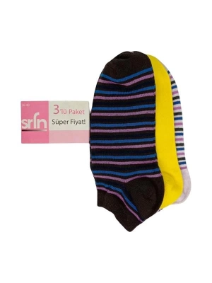 Srfn Kadın Patik Çorap 3 Lü Çizgili Desen