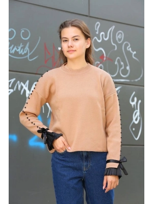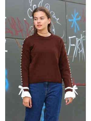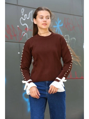 Boncuklu Bile Detaylı Kazak Kahve