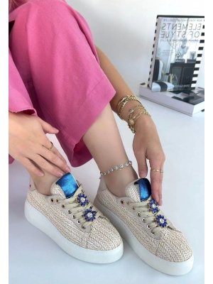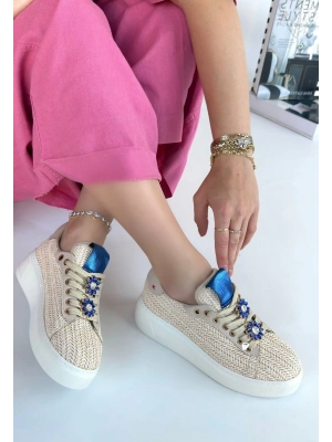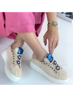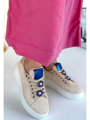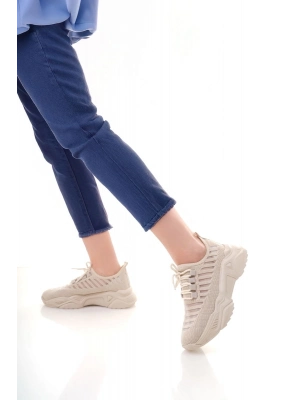 Iwer Bej Hasır Dokumalı Bağcıklı Spor Ayakkabı