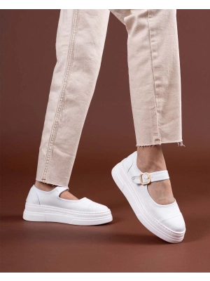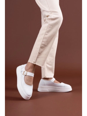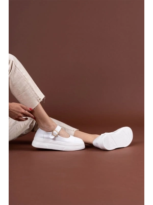 Riboy Beyaz Cilt Dolgu Topuk Sandalet