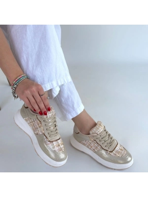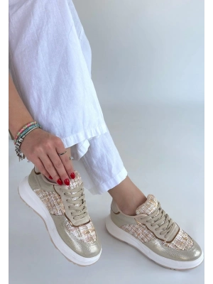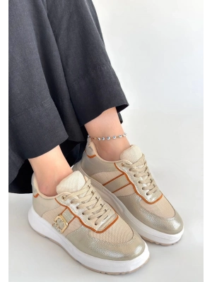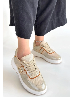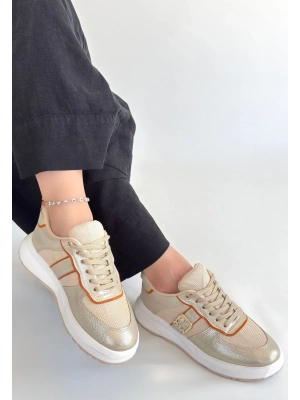 Tanwe Bej Cilt Bağcıklı Spor Ayakkabı