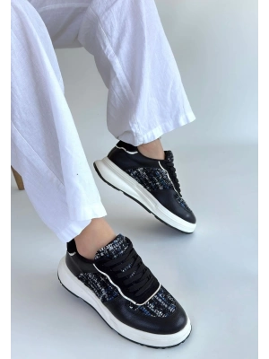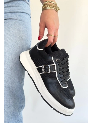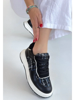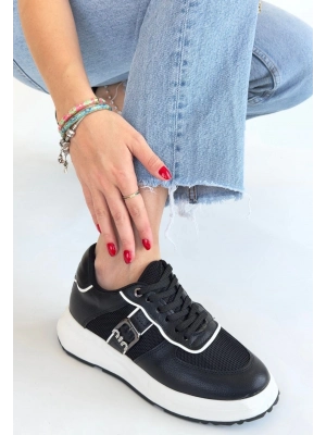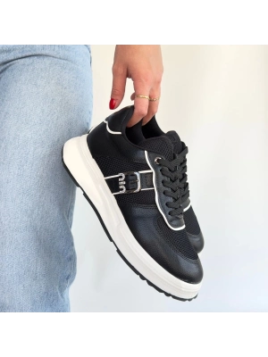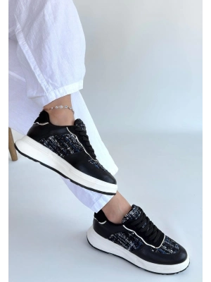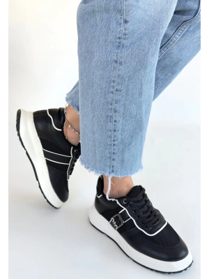 Tanwe Siyah Cilt Bağcıklı Spor Ayakkabı