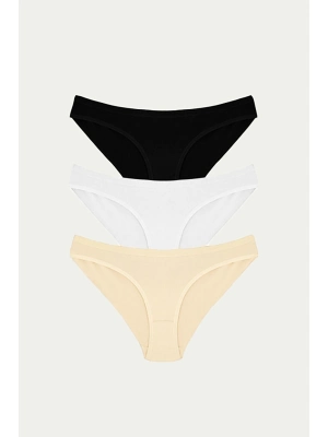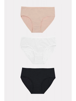 Pamuklu Siyah Beyaz Ten Rengi 3'lü Külot