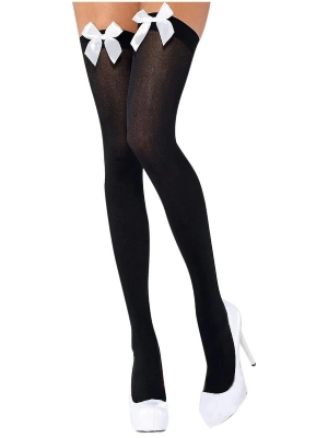 Beyaz Fiyonklu Siyah Jartiyer Çorabı Tm1196