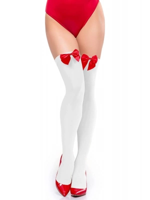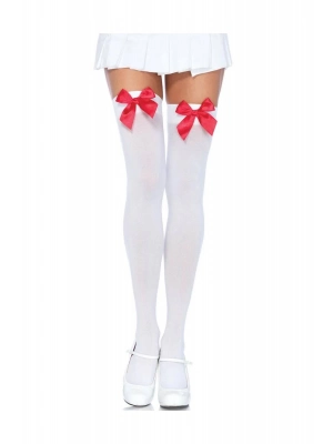 Kırmızı Fiyonklu Beyaz Jartiyer Çorabı Tm1147