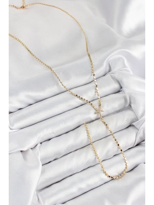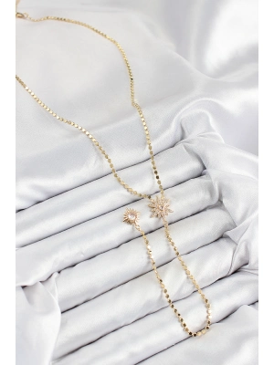 Pirinç Zirkon Taşlı Ezme Zincirli Kutup Yıldızı Model Gold Renk Y Kolye - Bamido