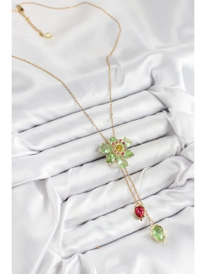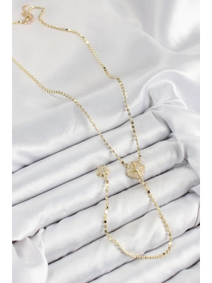 Vıp Pirinç Zirkon Taşlı Çiçek Model Gold Renk Asansörlü Kadın Kolye - Bamido