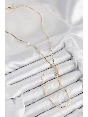 Pirinç Zirkon Taşlı Ezme Zincirli Model Gold Renk Y Kolye - Bamido