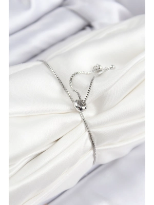 Pirinç Zirkon Taşlı Sıralı Kalp Model Gümüş Renk Asansörlü Kadın Bileklik - Bamido