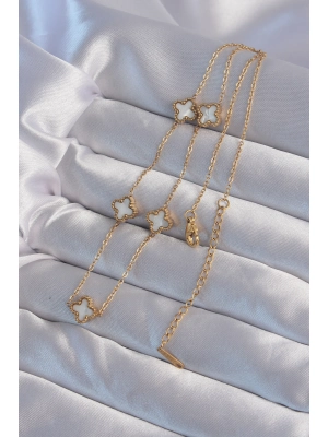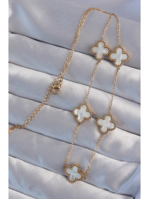 316l Çelik Gold Renk Beyaz Sedefli Yonca Kolye - Bamido