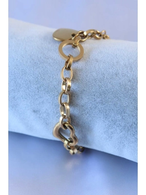 316l Çelik Gold Renk Kalp Figür Zincir Model Kadın Bileklik - Bamido
