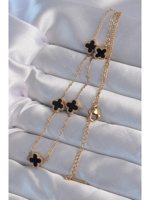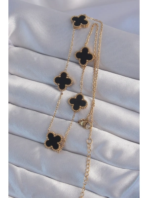 316l Çelik Gold Renk Siyah Mineli Yonca Kolye - Bamido