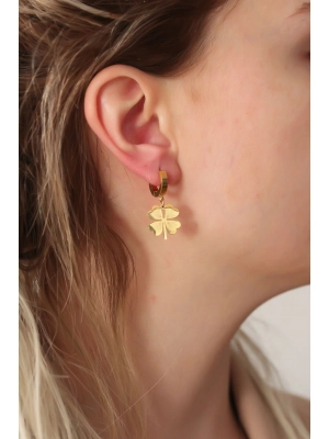 316l Çelik Gold Renk Yonca Küpe - Bamido