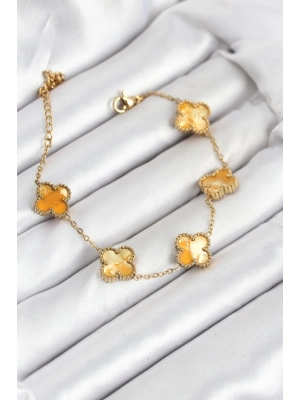 316l Çelik Gold Zincir Sarı Yonca Bileklik - Bamido