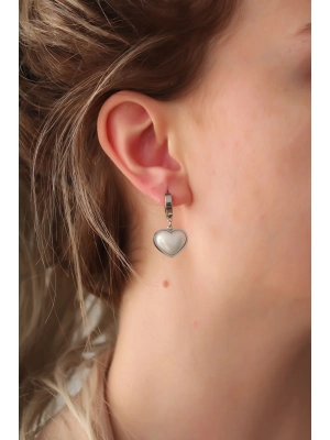 316l Çelik Gümüş Renk Beyaz Bombeli Kalp Küpe - Bamido