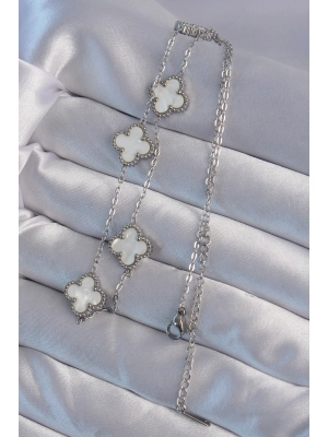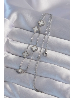 316l Çelik Gümüş Renk Beyaz Sedefli Yonca Kolye - Bamido