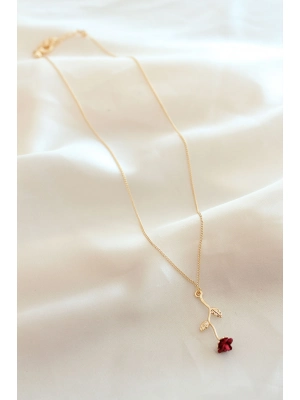 Kırmızı Gül Figürlü Kolye - Bamido