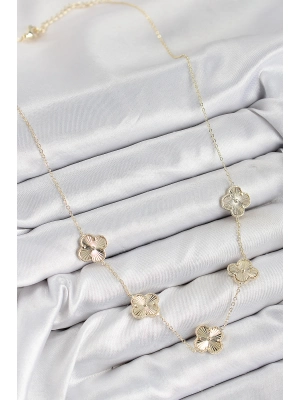 Pirinç Vıp Yonca Model Gold Renk Kadın Kolye - Bamido