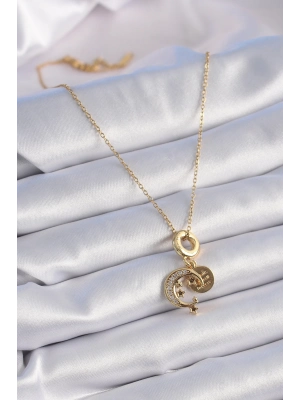 Bamido 316l Çelik Gold Renk Zirkon Taşlı Ay Yıldız Model Charm Model Kadın Kolye - Lisinya
