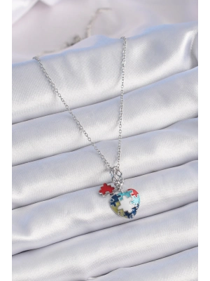 Bamido 316l Çelik Gümüş Renk Yapboz Motif Kalp Figür Charm Model Kadın Kolye - Lisinya