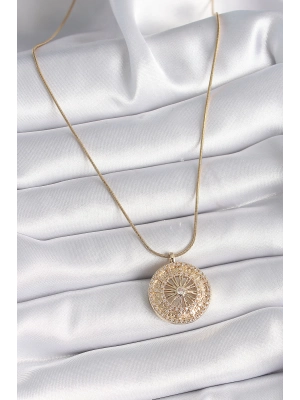 Bamido 316l Çelik Gold Renk İtalyan Zincir Zirkon Taşlı Kutup Yıldız İşleme Kadın Kolye - Lisinya