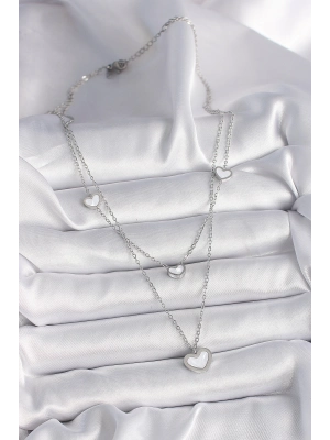 Bamido 316l Çelik Gümüş Renk Zincir 2'li Zincir Kalp Model Kadın Kolye - Lisinya